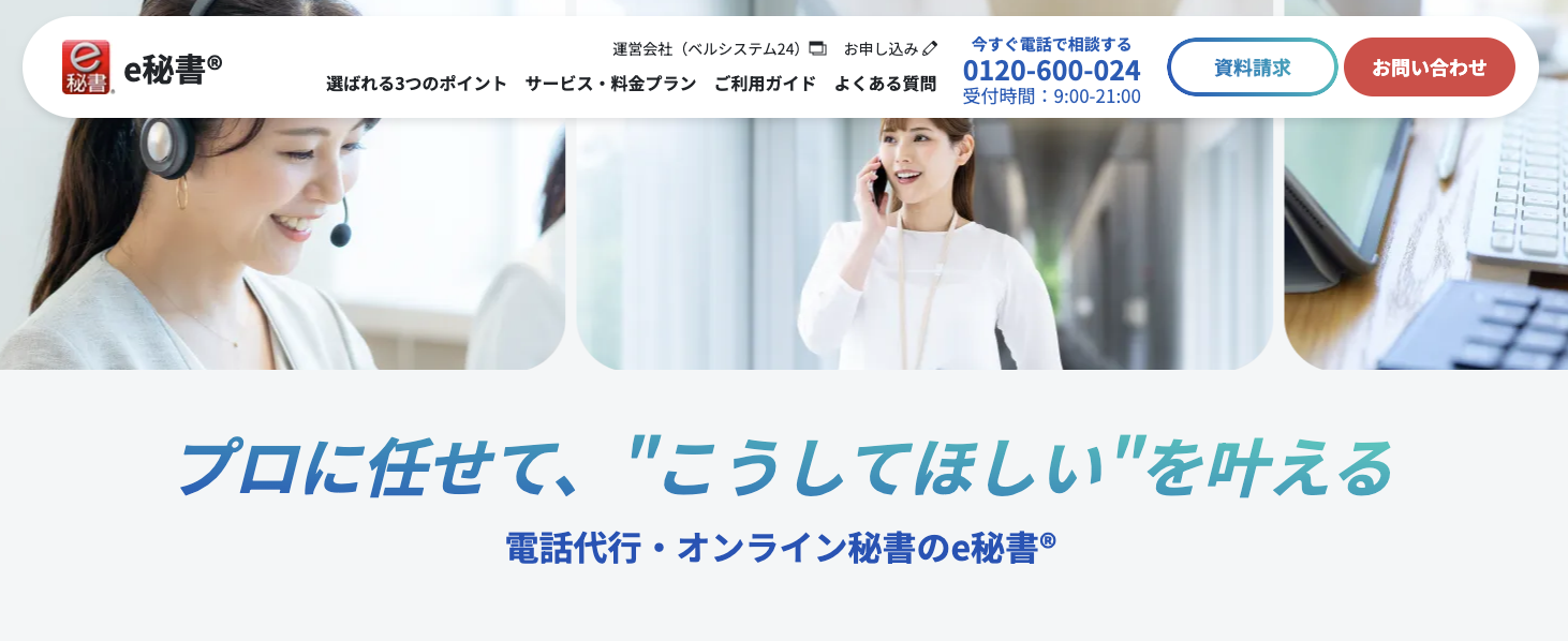 東証プライム上場の大手BPO企業、ベルシステム24が提供する電話秘書代行サービスです。1982年創業・全国に多数のセンターを持つコールセンター専業の大手ならではの、オペレーター育成体制と対応品質の安定感が最大の強みです。大企業から中堅企業まで幅広い法人に導入実績があり、「企業の顔」としての電話応対品質を重視したい場合に選ばれることが多いです。